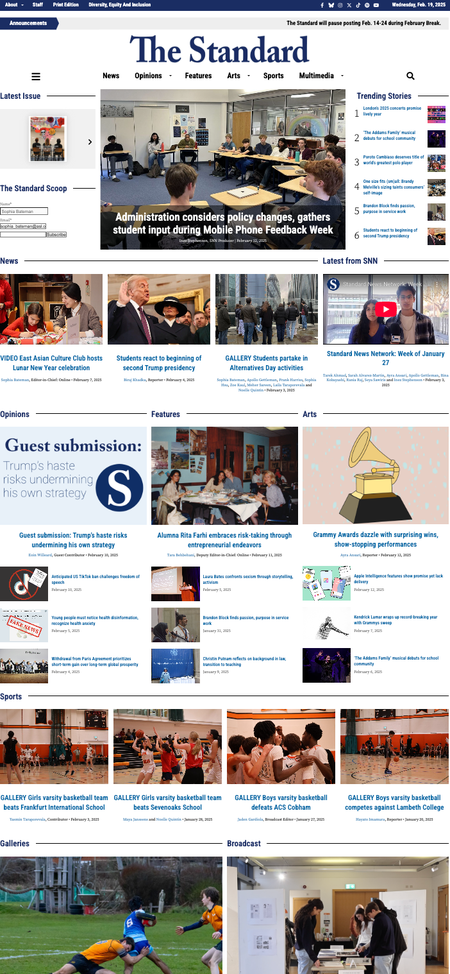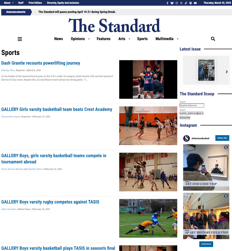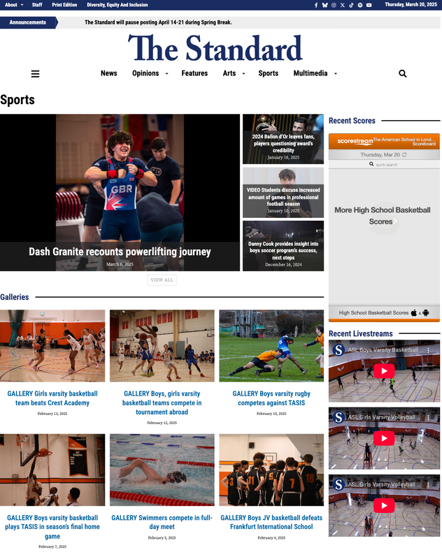 I also created a custom layout for our sports section, which we had never done before in The Standard's history. This way, readers can more easily find what they're looking for — a written article, photo gallery, game scores or a livestream. View the new sports page here.