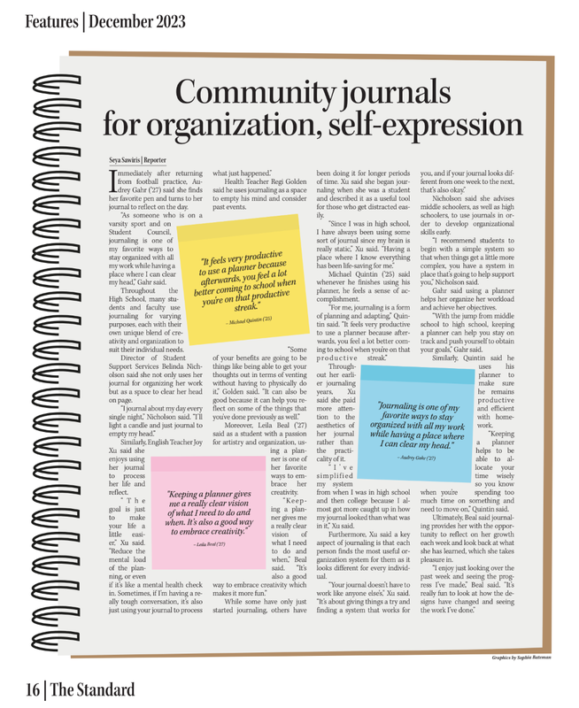 Although my role as Editor-in-Chief: Online no longer includes formal responsibilities for print, I’ve still made time to design a page or two this year. Previously, as Lead Features Editor during the 2023–24 school year, I was responsible for both print and online content, regularly laying out at least two pages for about five issues. Below are a few of my favorite designs from that time, which reflect my attention to visual storytelling. Click on each one to be taken to the PDF version of the story.