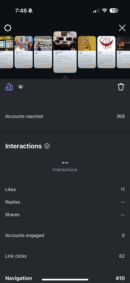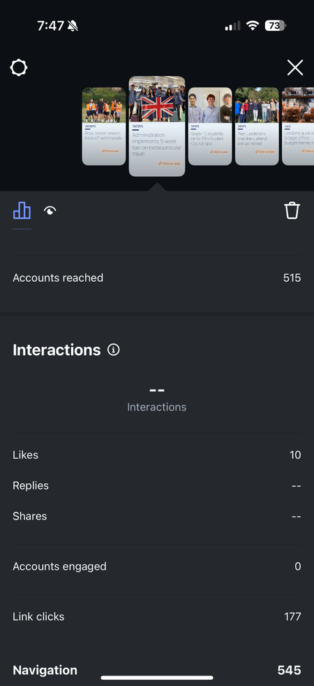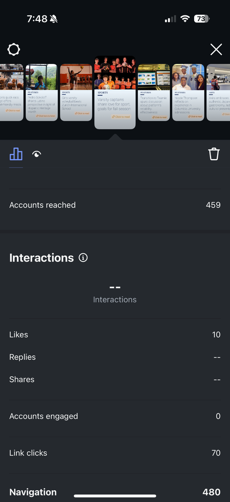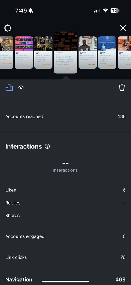 This has significantly increased traffic to our website. I carefully select stories that I believe will resonate with a broad range of the student body, while also ensuring variety by highlighting different sections and types of content each week. Hover over each screenshot below to read a description of the analytics.
