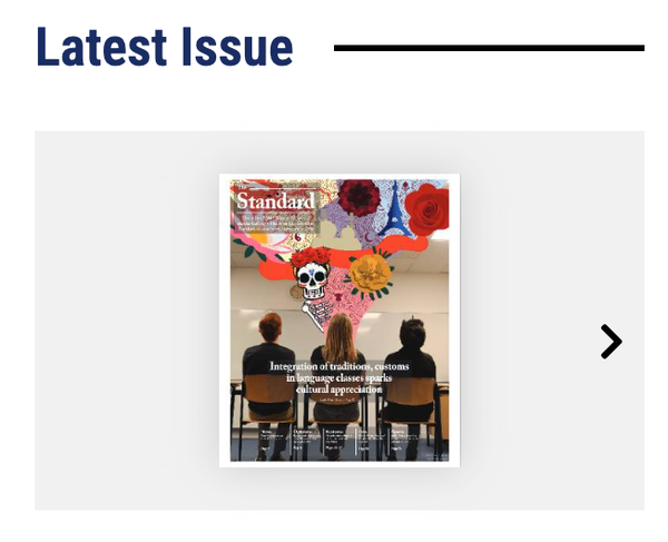 We also display our print issues online, which I am in charge of displaying. When redesigning the site, I made sure to keep it at the top of the homepage for increased accessibility and engagement.
